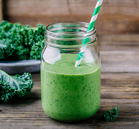 Step 1. Add the almond milk to a high-power blender and toss the banana pieces and kale in. Blend on high.